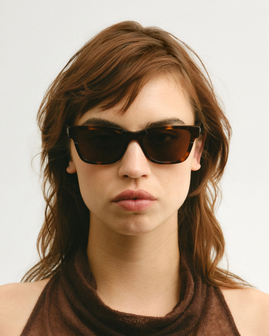 Crafted from premium Italian acetate, the warm tortoise frame introduces rich tonal variation and depth, complemented by soft brown lenses that enhance its understated sophistication. The slightly tilted design ensures a secure and balanced fit on most face shapes, providing both comfort and visual harmony.