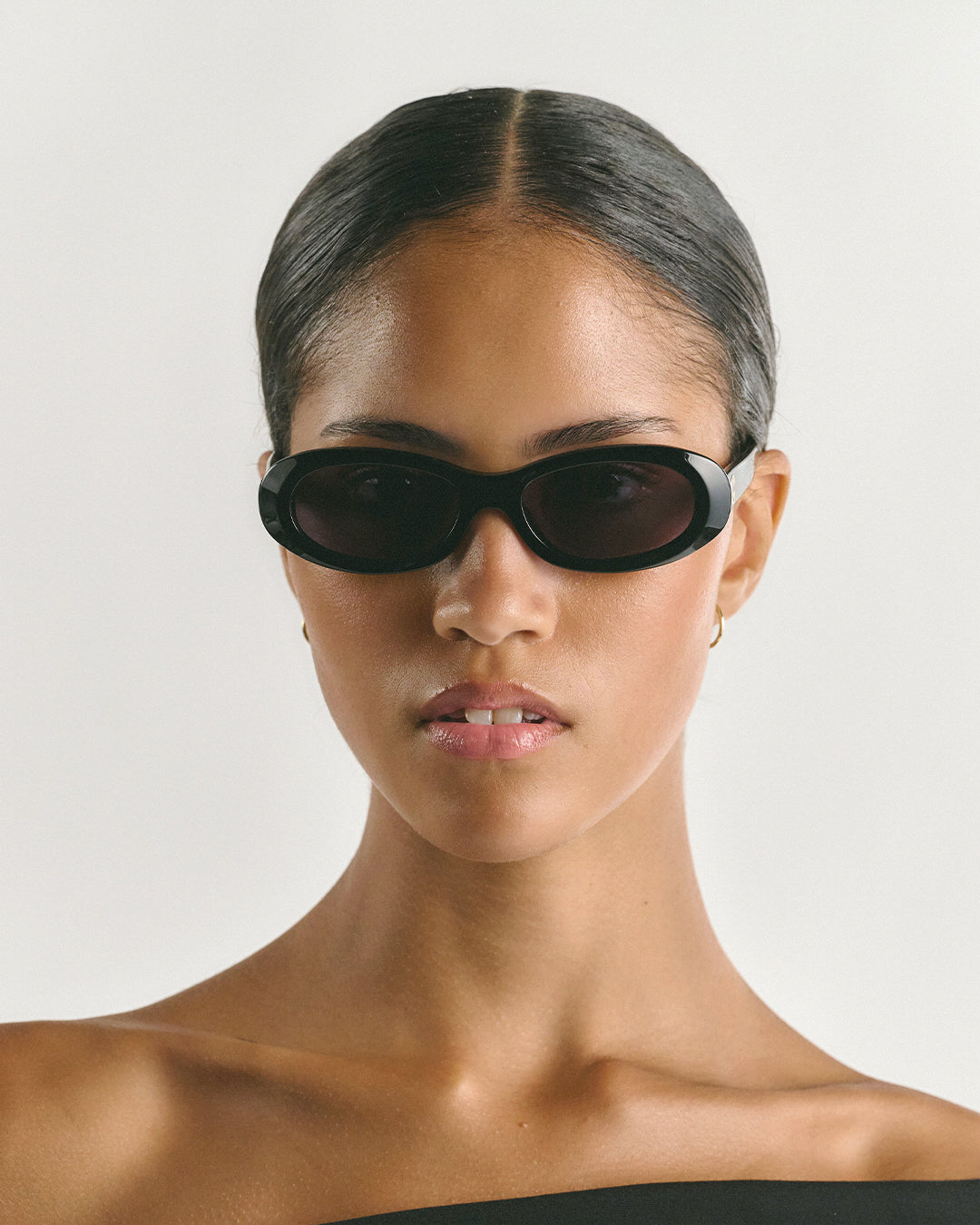 Louis Black Black presents a monochromatic, understated silhouette. The slim, oval shape in all-black delivers a refined, minimalist look.