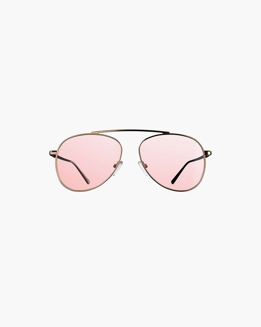 Ibiza Gold Pink features a bold aviator design with a unique twist—no nose bridge, giving it a sleek, minimalist look. The frame is crafted from durable materials, providing both style and reliability.