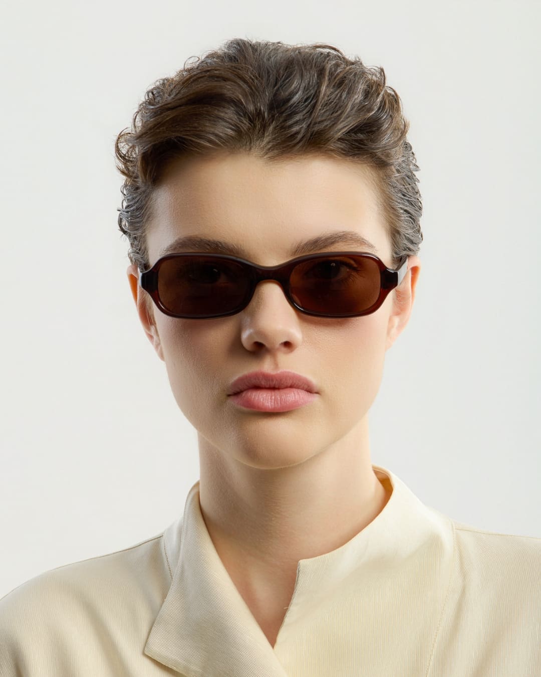Lou Brown Brown features a squared shape with slightly asymmetric sides that give a modern and distinctive look. The subtle teardrops at the corners provide a discreet butterfly-inspired detail. The deep brown frame is designed in Stockholm and crafted from premium Italian acetate, while durable German OBE hinges ensure long-lasting comfort.
