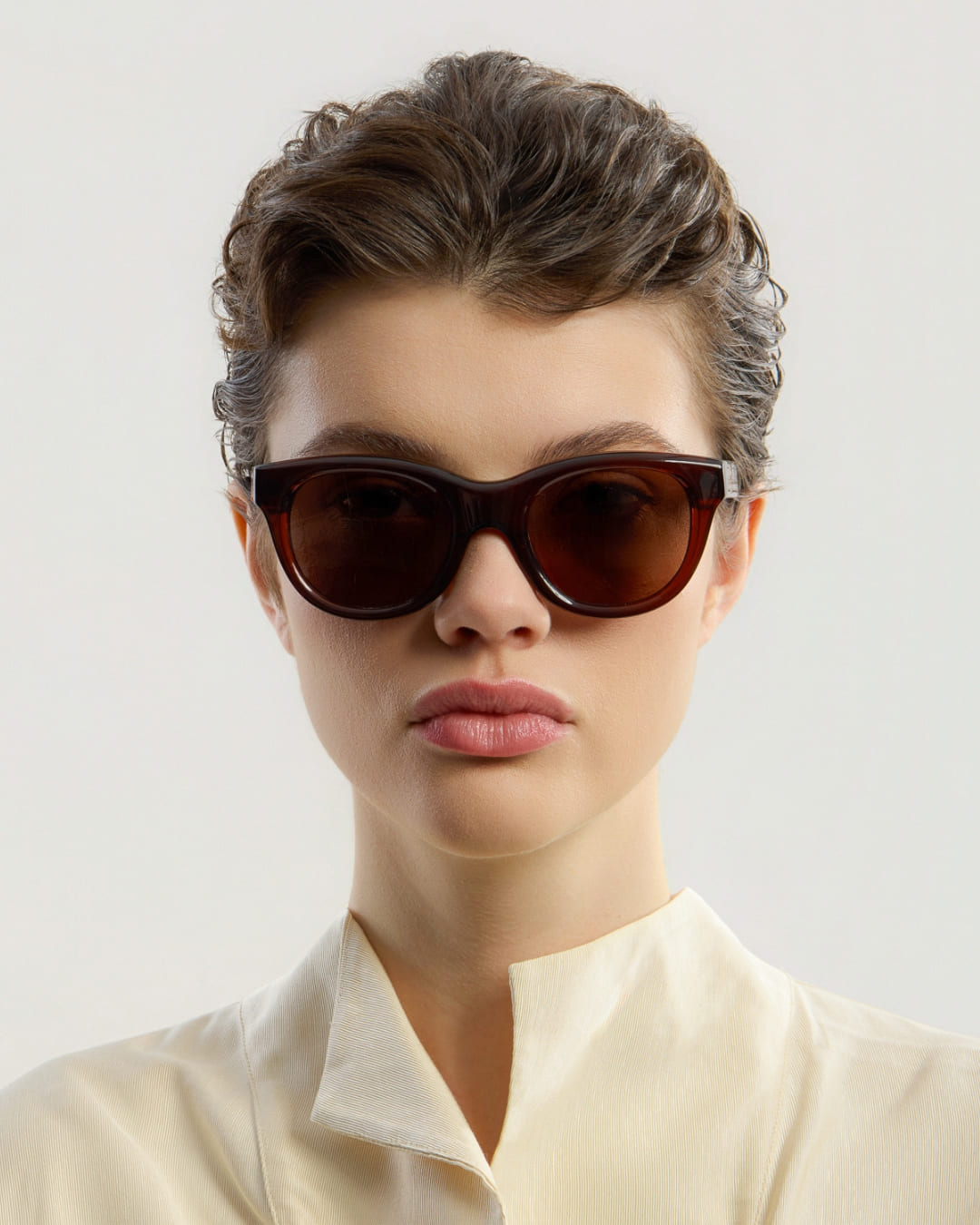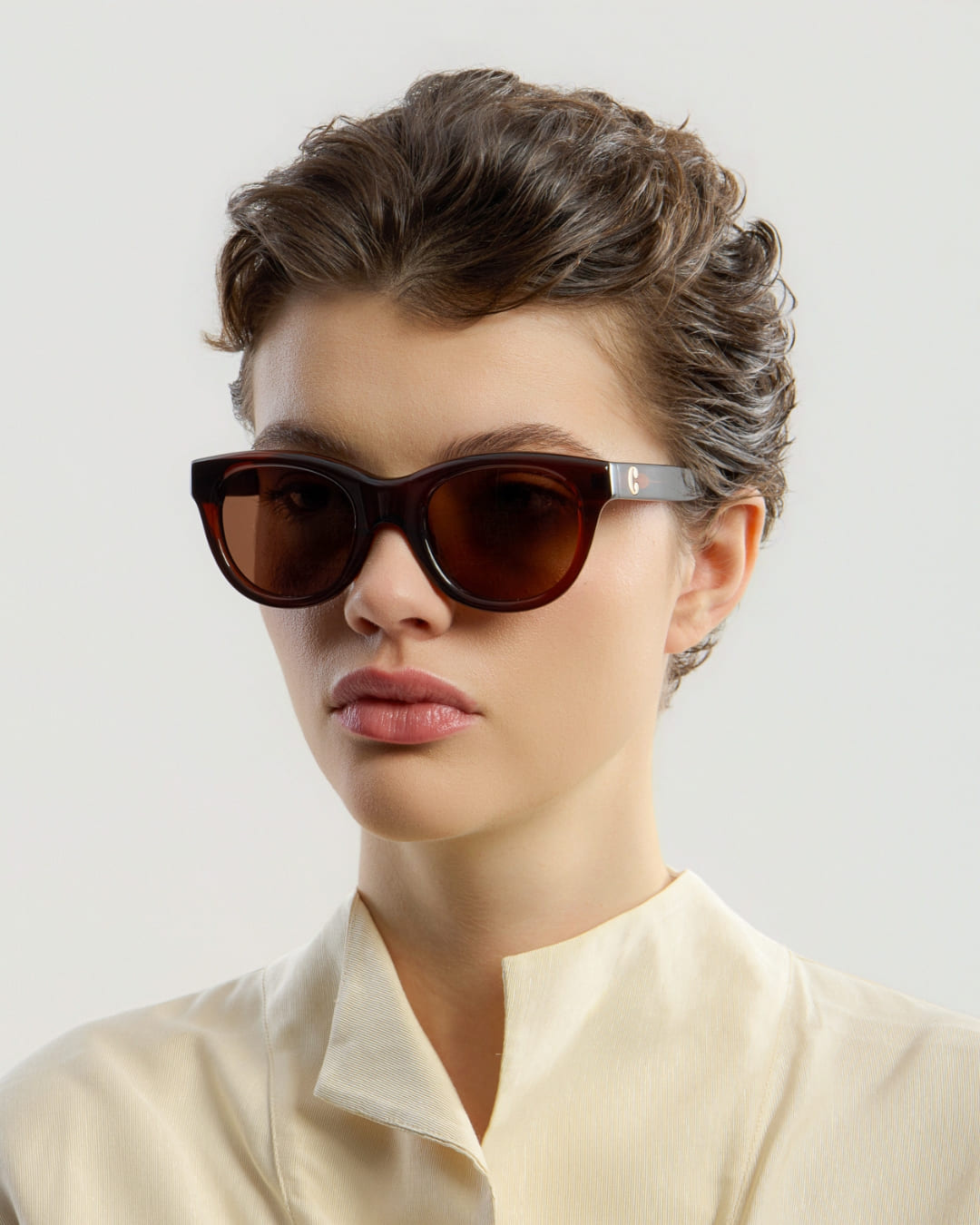 Rey Brown Brown har en oversized silhuett med en subtil cat-eye-form. Tillverkad av tyngre premium italienskt acetat i en djupbrun finish skapar bågen ett djärvt och självsäkert uttryck. Designad i Stockholm erbjuder modellen en klassisk oversized stil, medan hållbara tyska OBE-gångjärn säkerställer långvarig kvalitet.