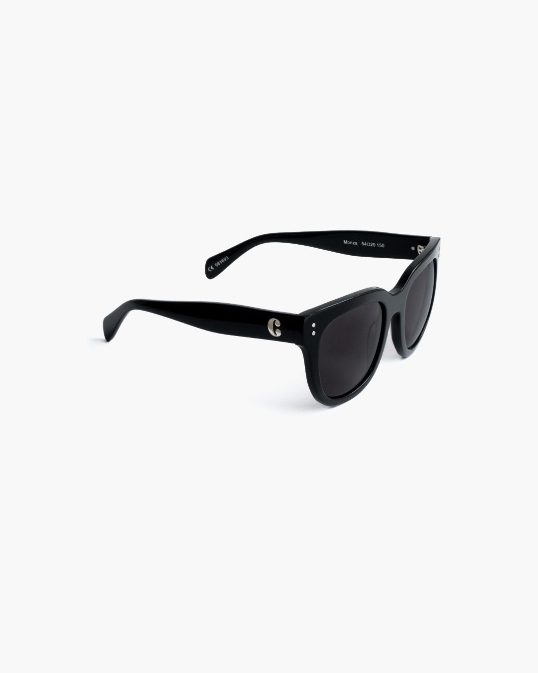 Monza Black Black features an oversized D-shaped frame that blends bold contours with a sleek, minimalist expression. The all-black design delivers a classic, sophisticated look, while the large, UV-protective CR39 lenses ensure excellent sun protection and a clear, comfortable visual experience. Subtle silver rivets at the hinges add a refined detail to the durable bio-acetate construction.